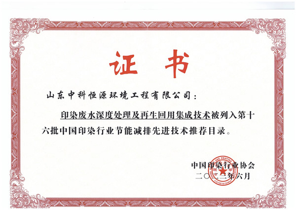 荣誉+1!中科恒源技术再次入选《第十七批中国印染行业节能减排先进技术推荐目录》!